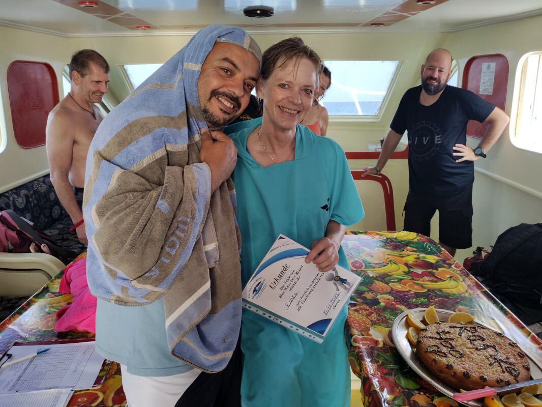 Heute segelten wir um 10:00 Uhr nach Fanadir Dacht. Unterwegs gab Mohamed eine ausführliche Zusammenfassung des geplanten Tauchgangs, überprüfte, ob alle Taucher genügend Gewichte hatten, und wir führten zwei kleine Übungen durch. Beim Tauchgang sahen wir viele bunte Fische und genossen die ruhige Strömung. Nach dem Auftauchen kehrten wir zum Boot zurück, wo das Mittagessen bereits fertig war. Wir machten eine gemütliche Pause, um das leckere Essen zu verdauen und uns etwas zu erholen.