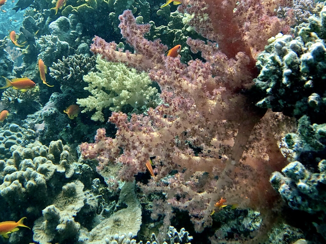 Nach dem Mittagessen hüpften wir erneut am Panorama Reef auf der Westseite ins kühle Nass. Wir sichteten eine Schildkröte, einen Bogenstirn-Torpedorochen, einen gepunkteten Schlangenaal, einen Igelfisch, Flötenfische, Rotfeuerfische sowie jede Menge wunderschöner Hart- und Weichkorallen.