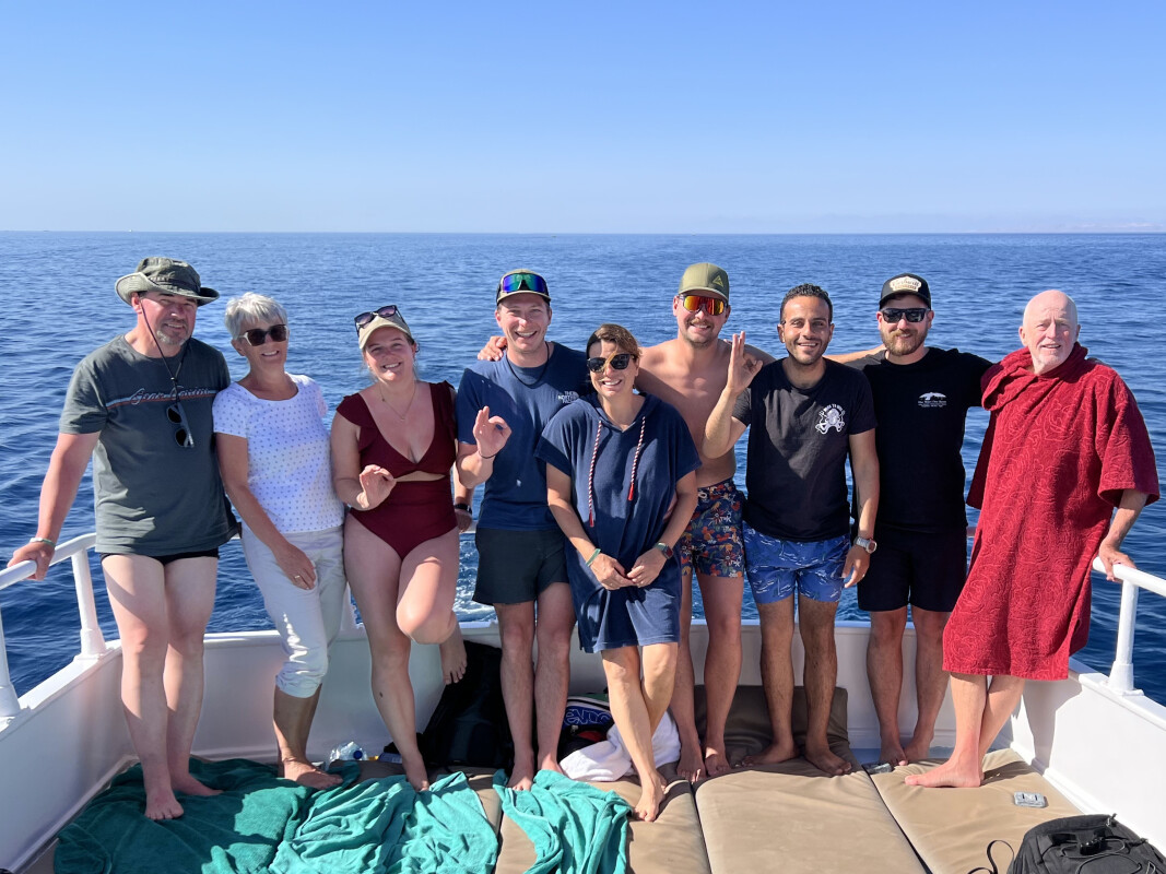 Zwischen den Tauchgängen haben wir uns eine wohlverdiente Pause gegönnt – inklusive leckerem Mittagessen (das nach so einem Tauchgang natürlich doppelt gut schmeckt!). Das Wetter hat auch mitgespielt: strahlender Sonnenschein, kein Wind, keine Wellen – fast schon kitschig schön! Ein großes Dankeschön geht an unseren Kapitän und seine Crew – super freundlich, hilfsbereit und immer mit einem Lächeln dabei. So macht das Ganze gleich noch mehr Spaß! Ganz liebe Grüße von Mo, Simone & Hamdy!