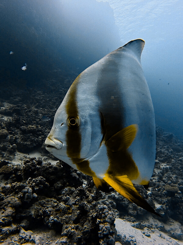 Nach dem zweiten Briefing machten wir uns bereit für den nächsten Tauchgang: Wir tauchten bei Shaab Sabina als Drift zur Leine. Auch dieser Tauchgang war voller Highlights: Wir sahen Gelbsattel-Meerbarben, Adlerrochen, einen Zackenbarsch, Muränen, Blaupunktrochen, einen Drachenkopf, einen Steinfisch und wieder einen Federschwanzrochen. Dann hieß es leider auch schon: Tauchgang beendet, zurück zum Boot. Wir ruhten uns noch etwas aus und genossen die entspannte Rückfahrt. Vielen Dank für diesen wunderschönen Tag! Liebe Grüße und bis bald, Samir & Azaz!