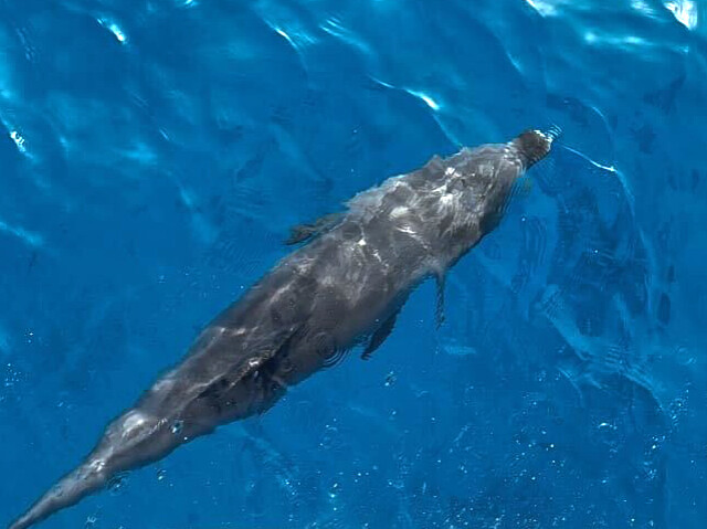 Hier durften wir mit sechs Delfinen tauchen. Immer wieder wurden wir von den Delfinen überrascht und sie umkreisten uns. Ein Erlebnis, was niemand vergessen wird. Des Weiteren sahen wir Blaupunktrochen, Riesenmuränen, Clownfische und Flötenfische. Unsere Schnorchler an Board sahen die Delfine ebenfalls beim Schnorcheln. Ein schöner und erfolgreicher Tag mit der International Group geht zu Ende. In der Tauchbasis wartete Hassan bereits in der ScuBAR mit Dekobier auf uns.