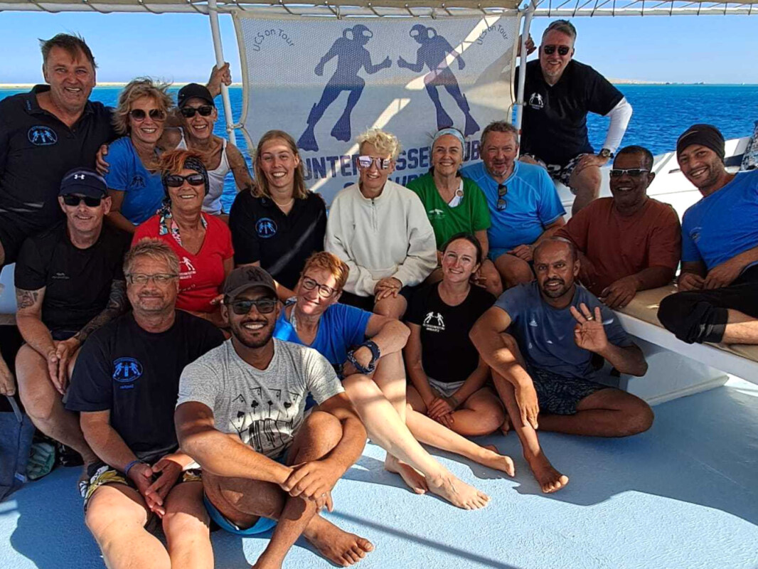 Nach der Pause sind wir bei Fanadir Foc Foc ins Wasser gesprungen und beim 15-Meter-Block wieder aufgetaucht. Das war unser Abschiedstauchgang im Roten Meer für unsere liebe Gruppe. Wir haben zwei Schildkröten, zwei Buckeldrachenköpfe, eine Variable Warzenschnecke, eine Baby-Riesenmuräne, zwei große Riesenmuränen, drei Fransendrachenköpfe, einen Oktopus und viele bunte Fische gesehen. Nach dem Auftauchen hat uns die Crew der Vardus ein sehr leckeres Mittagessen zubereitet und wir haben die letzten Momente auf dem Roten Meer noch einmal richtig genossen. Jetzt sind wir auf dem Weg zur ScuBAR, um unsere Deko-Drinks zu genießen. Morgen ist ein neuer Tag und ein neues Abenteuer beginnt! Bis morgen …