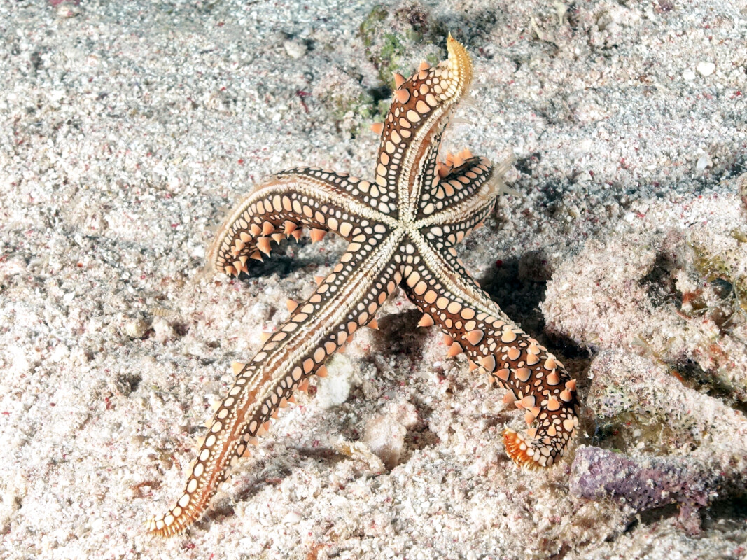 Guten Morgen von der Vardus! Nach einem großen Applaus für Kapitän und Crew starteten wir heute zu unserer Einsteigertour. Mit an Bord: motivierte Gäste, die ihren Tauchurlaub nun beginnen, und einige Schnorchler, die das Rote Meer von der Oberfläche aus entdecken wollten. Also hieß es: Leinen los – auf nach Fanadir! Während unsere Crew in der Lagune von Fanadir anlegte, bereiteten wir unser Equipment vor. Nach dem Briefing hieß es dann für alle Taucher: Maske an, auf die Plattform – und ab ins kühle Nass! Kaum eingetaucht, machten wir uns über das Riffdach auf den Weg und bewunderten die bunten Bewohner des Riffs. Blaupunktrochen, Riesenmuränen und viele Schwarmfische begrüßten uns in ihrem Zuhause. Ein großer Oktopus lugte neugierig aus seinem Versteck hervor, und auf dem Meeresgrund entdeckten wir einen wunderschönen Seestern, der uns sofort ins Auge fiel.