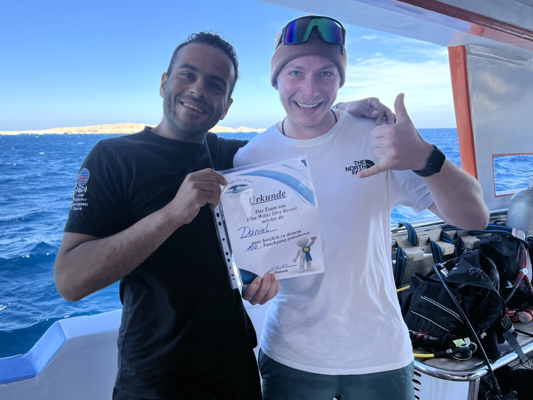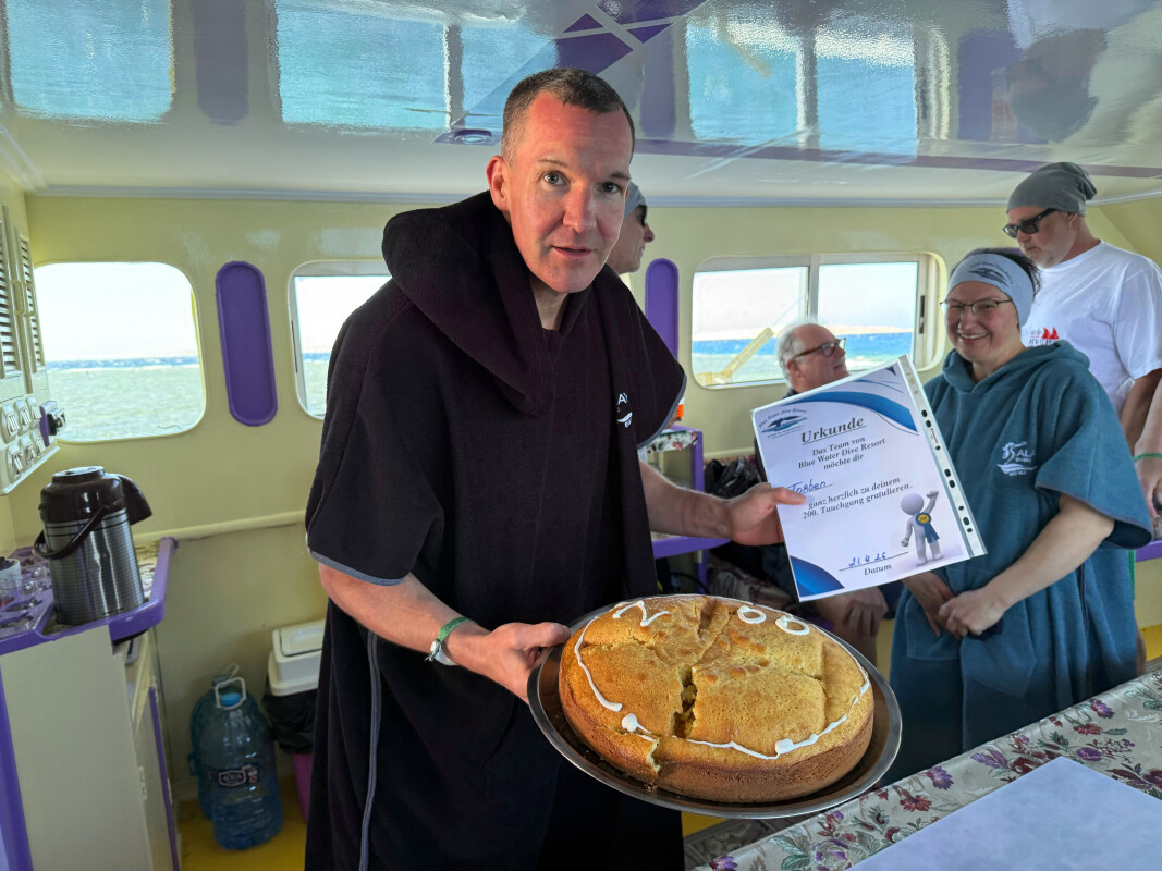 Der zweite Tauchgang führte uns zur Shaab Quais Cave. Auch dort war es beeindruckend. Wir entdeckten Seenadeln, Großaugen-Straßenkehrer, Adlerrochen und große Schwärme von Glasfischen, die sich im Licht der Höhle bewegten. Ein besonderes Highlight: Daniel hat heute seinen 100. Tauchgang geschafft – herzlichen Glückwunsch! Bis morgen!