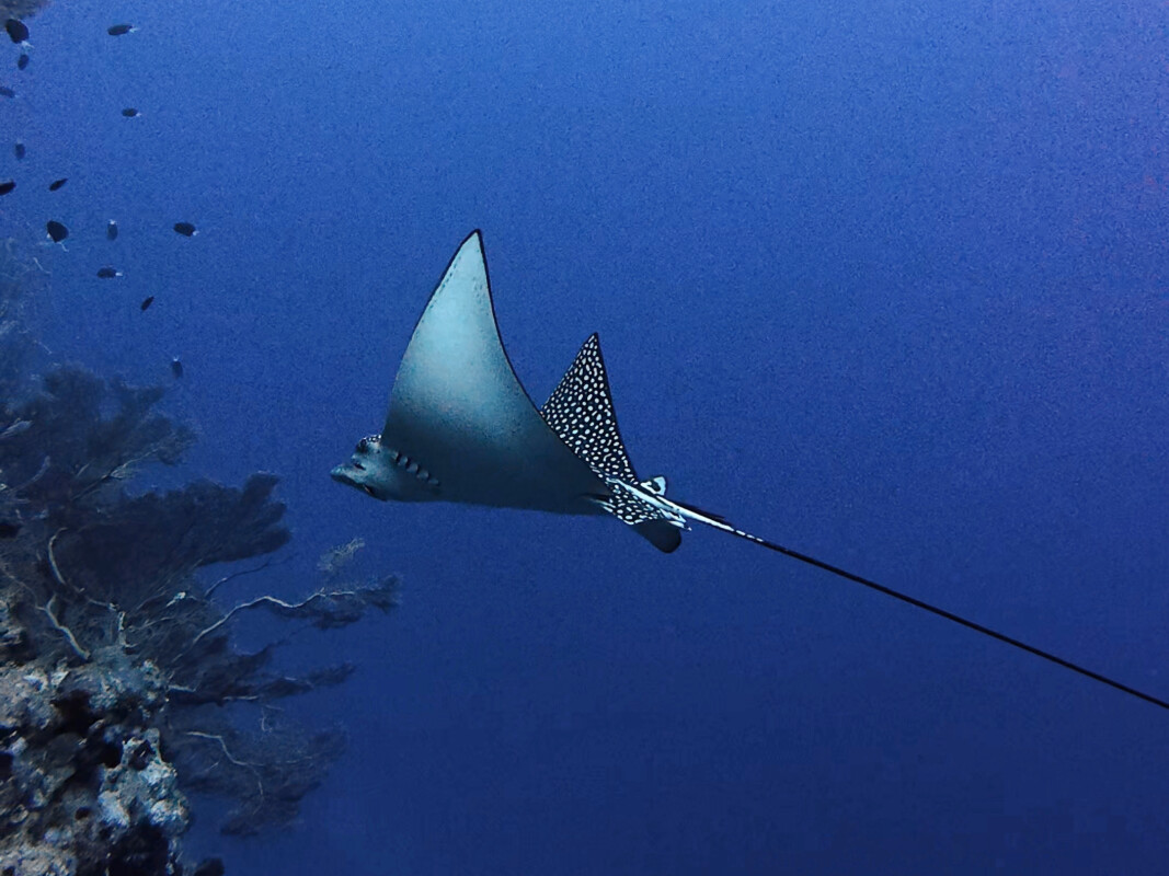 Nach einem genussvollen Mittagessen und einer erholsamen Siesta ging es weiter nach Shaab Alex. Dort begegneten wir den charmanten Bewohnern des Meeres: zwei großen, wunderschönen Adlerrochen, einer Pyjama-Nacktschnecke, einem Langnasen-Doktorfisch, einem Steinfisch, der anscheinend so tief schlief, dass er sich nicht rührte, einer Grauen Muräne, die aus der Höhle guckte, und unzähligen Skorpionsfischen. Ein unvergesslicher Tag unter Wasser! Jetzt treffen wir uns an unserer ScuBAR. Bis morgen, wir freuen uns schon!