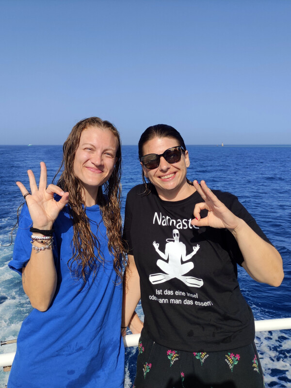 Mit schönstem Wetter starteten wir heute den Tag zusammen mit unseren Tauchern und planten, nach Norden zu fahren. Unser erster Tauchgang führte uns nach Fanadir Dacht für die Einsteigertour. Als zweiten Tauchgang wählten wir Fanadir Foc. Die Bedingungen waren perfekt: gute Sicht, keine Strömung, wunderschöne Korallen und jede Menge Fische. Wir begegneten einem großen Schwarm Stachelmakrelen, Skorpionfischen, Muränen, Fledermausfischen, Nacktschnecken und vielen weiteren Fischen – ein toller Start in den Tag. Nach dem ersten Tauchgang kehrten wir zum Boot zurück, machten eine Pause und genossen das Mittagessen.